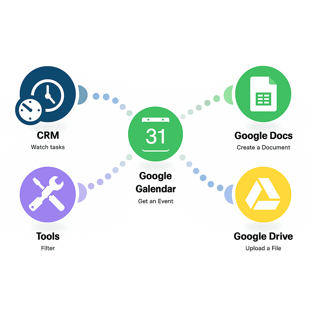 🔌 Elastyczność – działa z dowolnym CRM i kalendarzem obsługiwanym w Make.