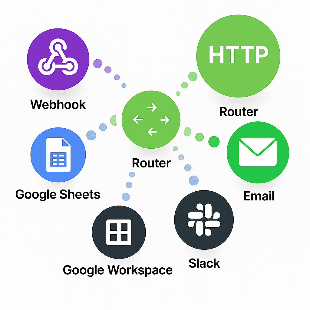 Scenariusz Automatyczne tworzenie kont użytkowników pozwala w pełni zautomatyzować proces tworzenia nowych kont pracowników, klientów lub studentów w dowolnym systemie – od Google Workspace i Slacka, po własne API, CRM lub WordPressa.