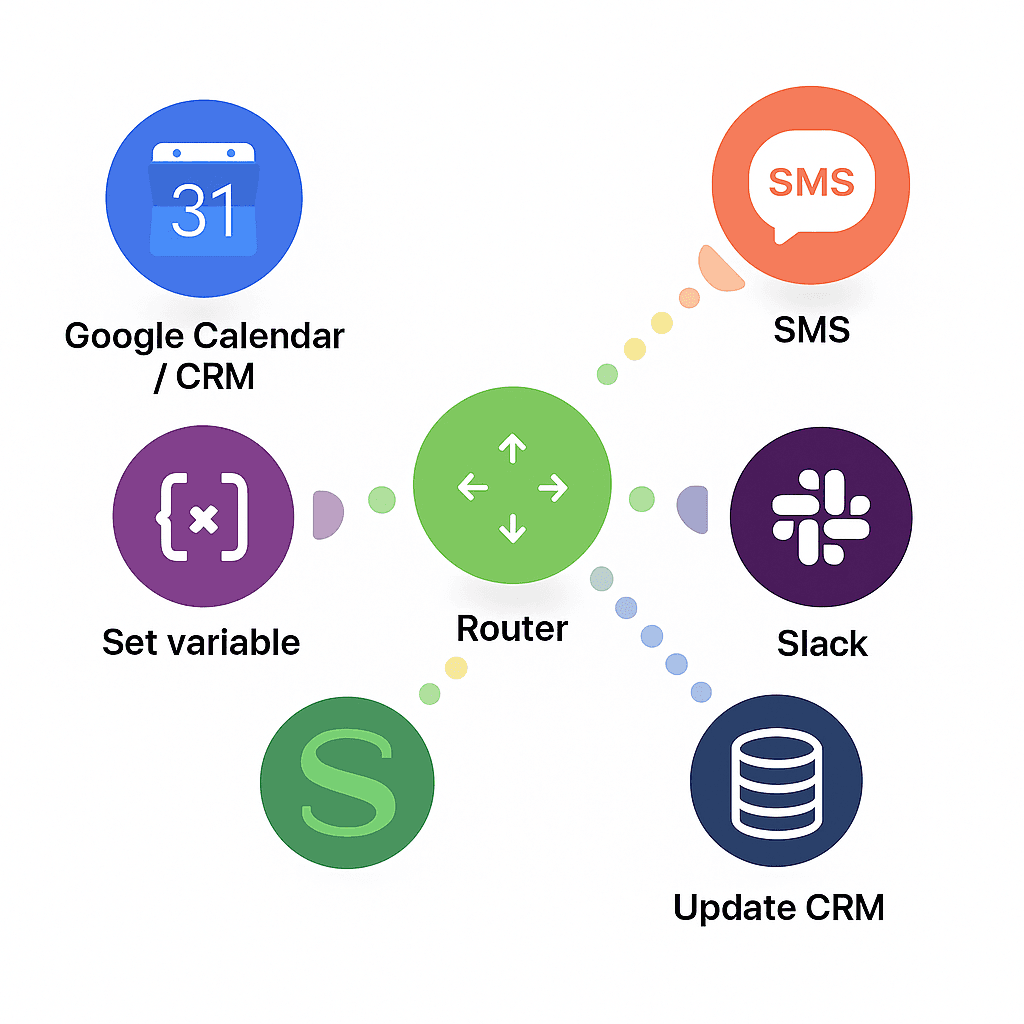 🔌 Elastyczność – działa z każdym CRM obsługiwanym w Make (Bitrix24, HubSpot, Zoho, Pipedrive, itp.).